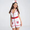5pcs Nurse Girl Front Zipper Long Dress Costumes Hat With Red Belt Stethoscope Women Uniform Cosplay Role-Play Sexy Lingerie