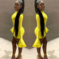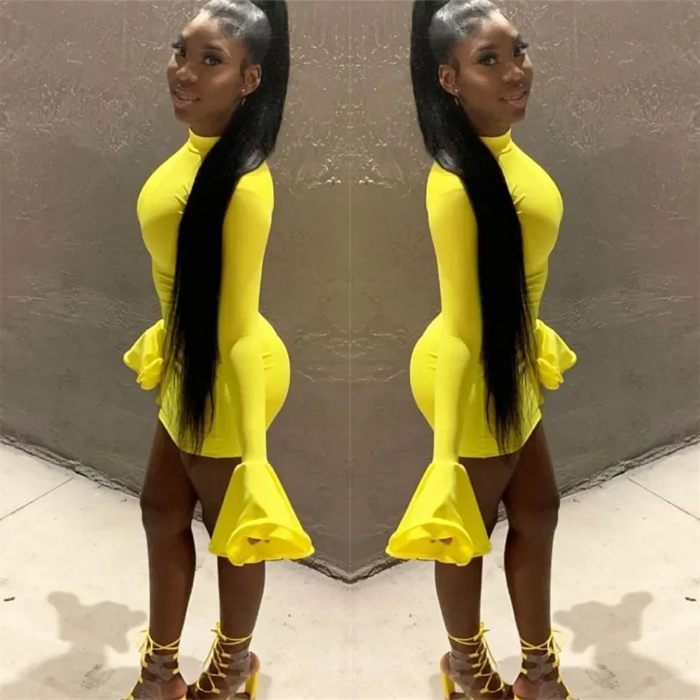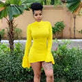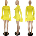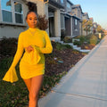 ANJAMANOR High Neck Flare Long Sleeve Bodycon Mini Dress Fall Fashion Sexy Yellow Dresses Party Night Club Wear D64-BG27