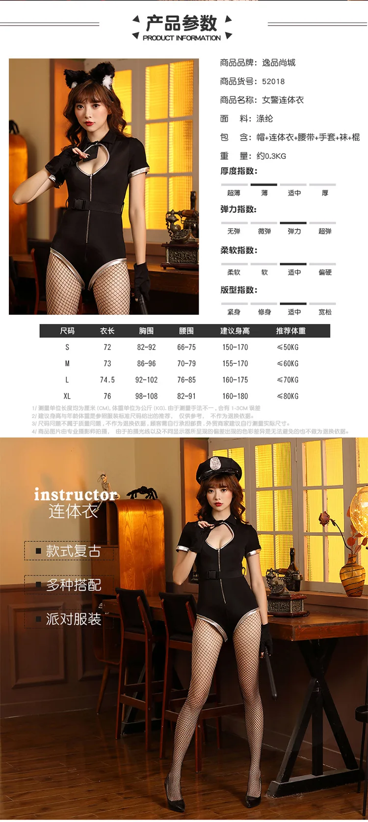 Include: cap, jumpsuits, belt, gloves, stockings, baton.
