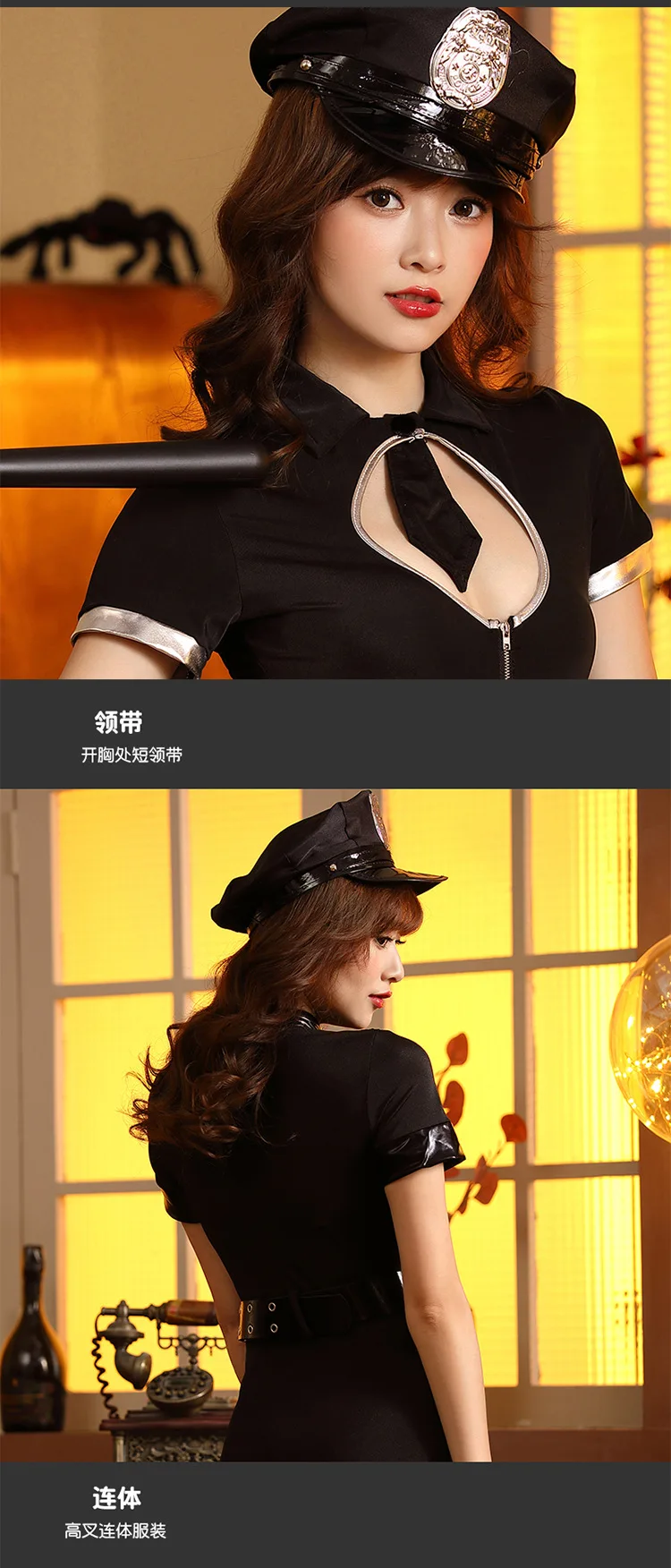 Black V-neck Woman Halloween Police Uniforms Costumes Female Policewoman Cosplay Carnival Purim Nightclub Role Play Party Dress