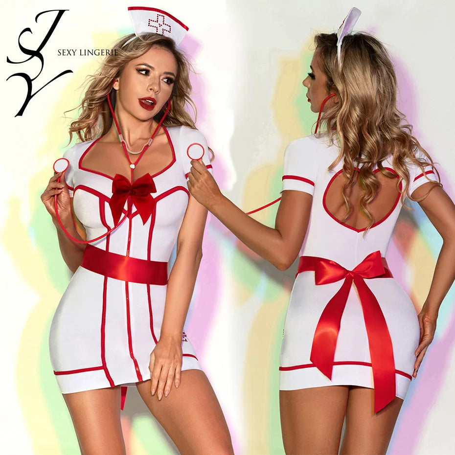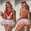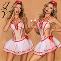 JSY Sexy Nurse Uniform Cosplay Lingerie Women Underwear Set Red Leather Top And Skirt Babydoll Nightgown Sexy Role Play Outfit