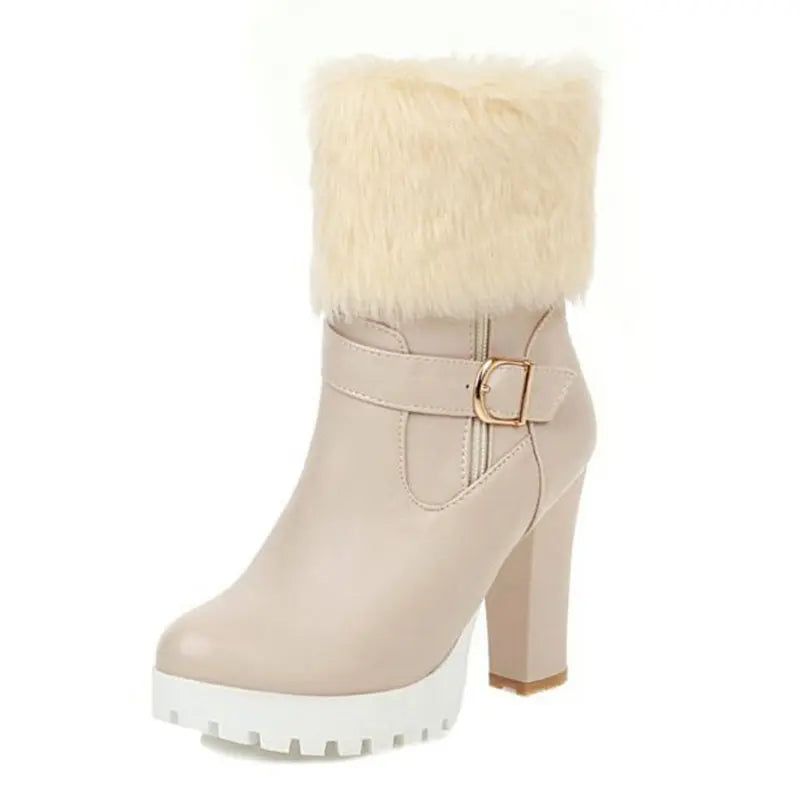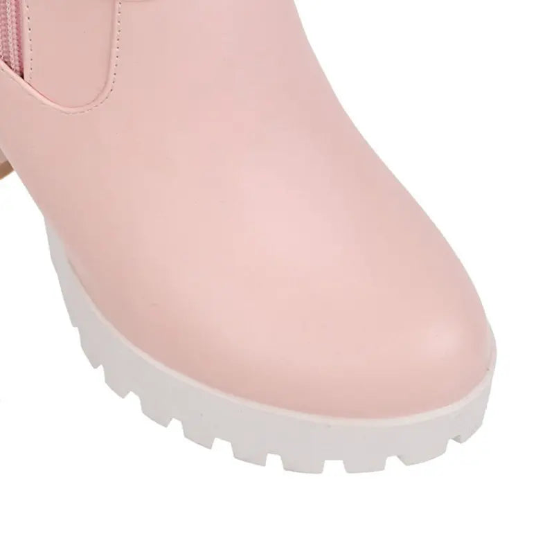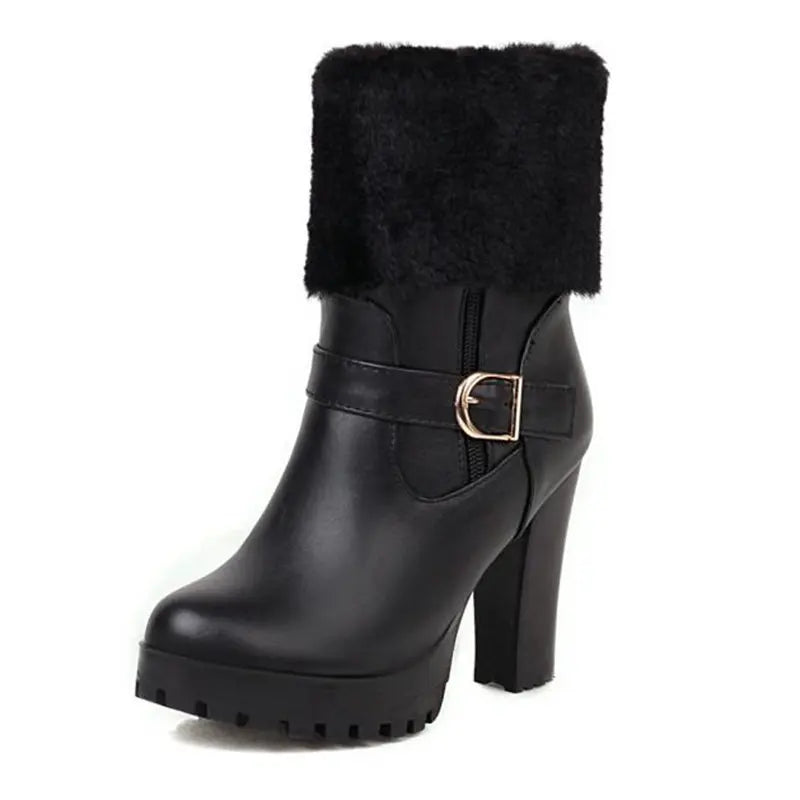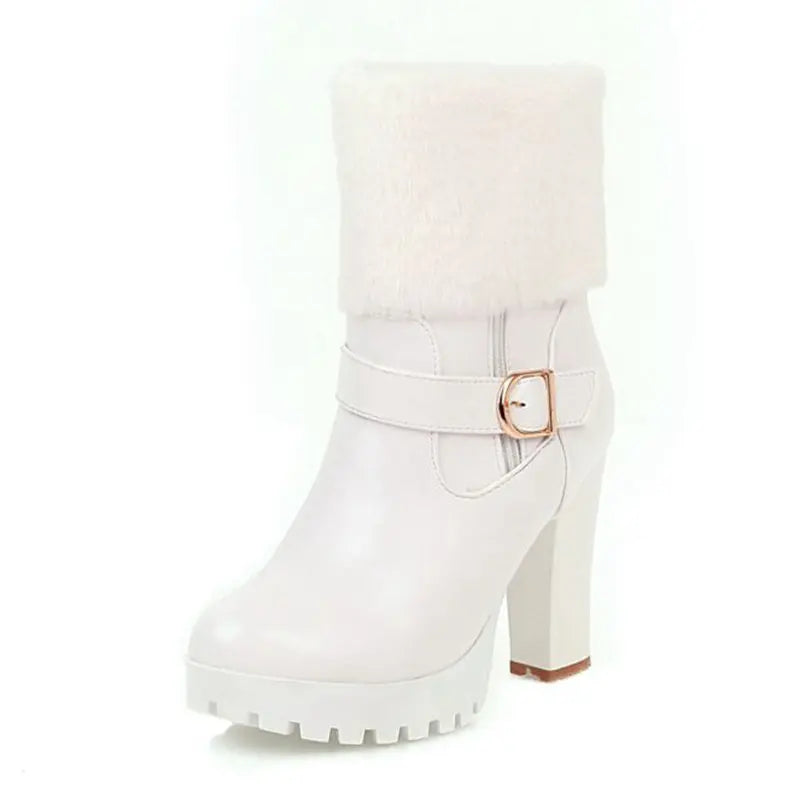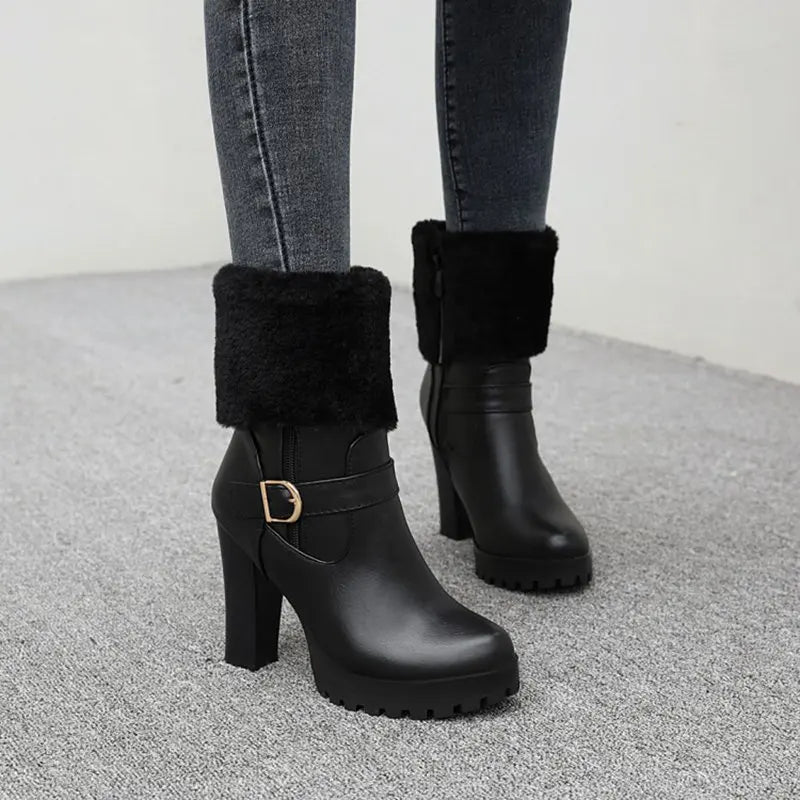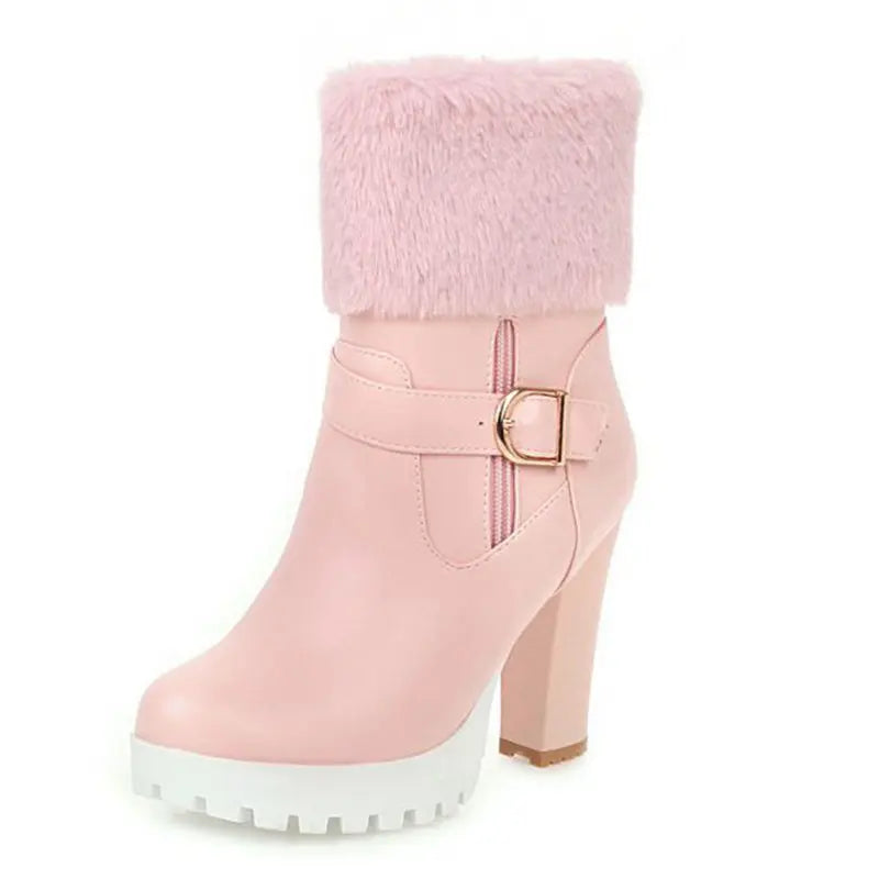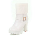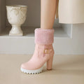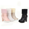 REAVE CAT Women Boots Round Toe Block Heels 10cm Platform 2cm Belt Buckles Big Size 41 42 43 Sweet Female Booties