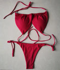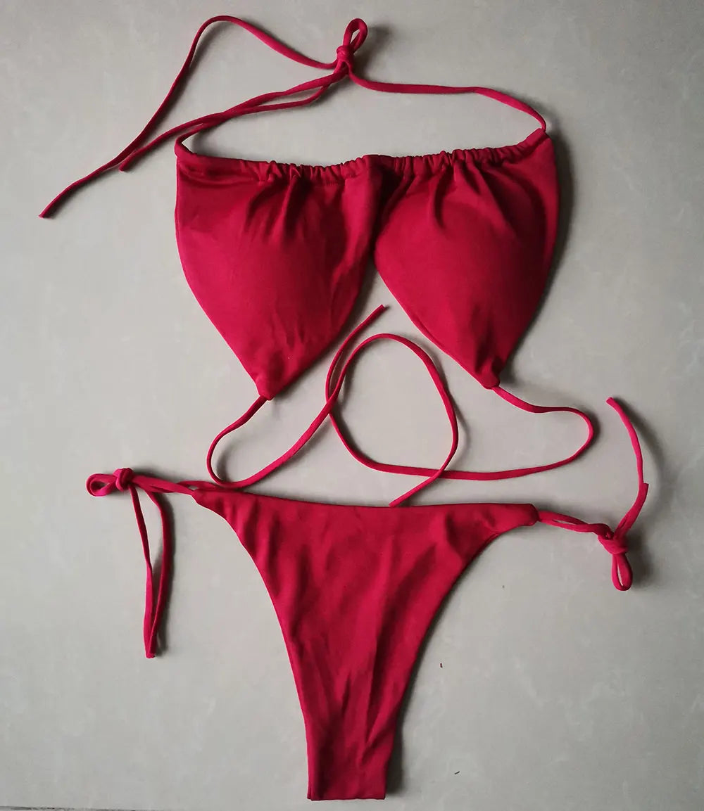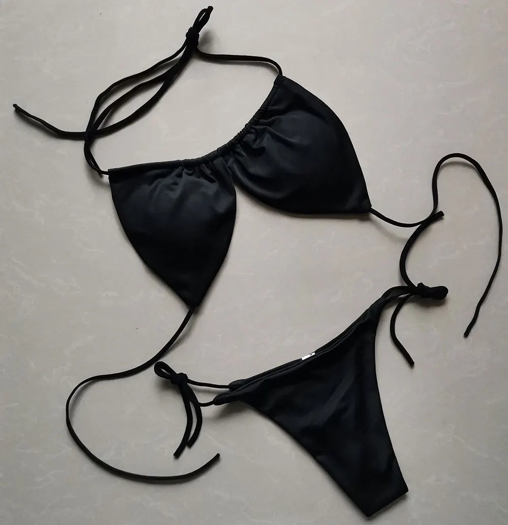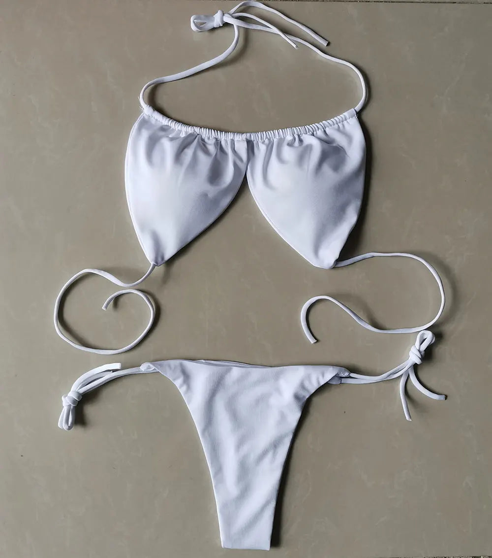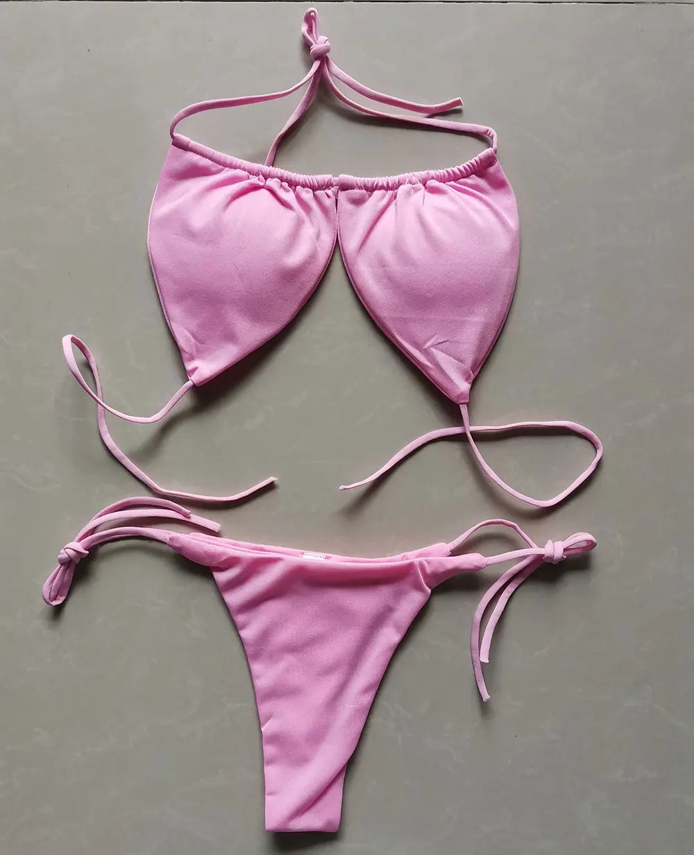 Summer Sexy Bikini set Push-up padded Bra Thong Split Swimwear Female Bandage Bathing Suit Adjustable Lacing Swimsuit Solid