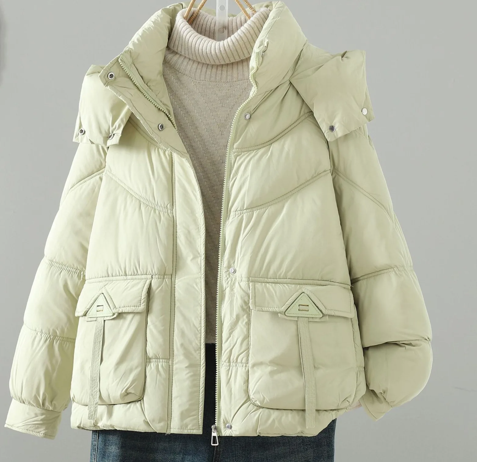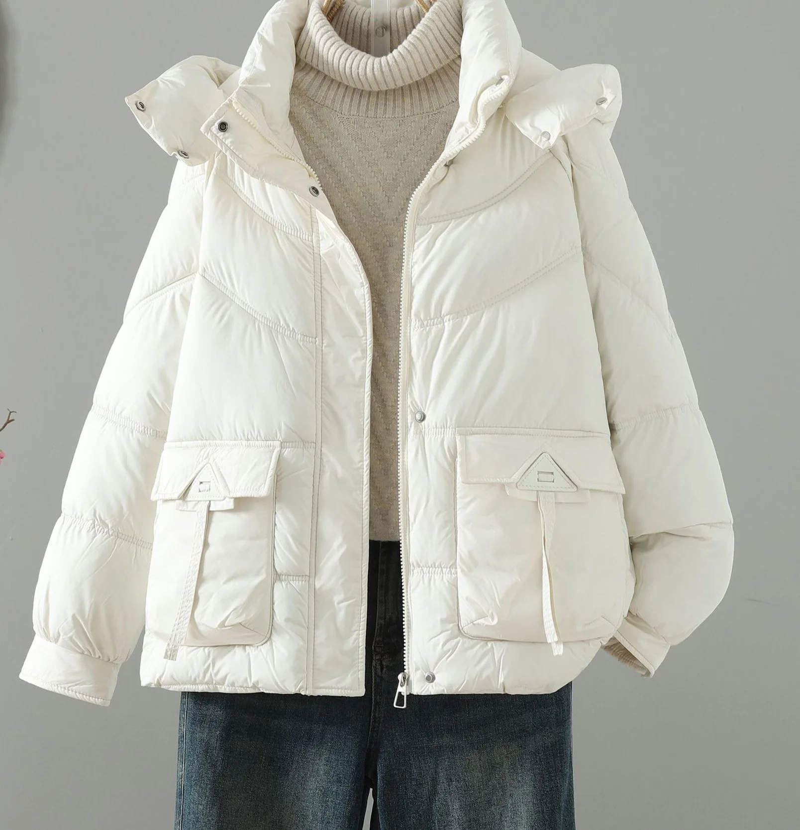 Stay warm and stylish with this women’s thick winter down jacket. Designed with a loose fit and a cozy hood, it provides excellent insulation against cold weather while allowing easy movement. Made from high-quality materials, this jacket is soft, durable, and perfect for everyday winter wear. Ideal for casual outings, outdoor activities, or city strolls, it combines comfort, warmth, and Korean-inspired fashion for a chic winter look.