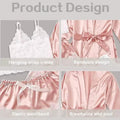 Women's Summer Sexy Pajama Pants Set 4 Pieces Lace Satin With Silk Sleepwear Robe Fashion And Comfortable Nightwear